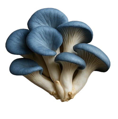 Der Blaue Austernpilz ist eine winterharte Gourmet-Sorte, die vor allem im jungen Zustand für ihre tiefblaue, graue Farbe bekannt ist. Er gehört zur Familie der Austernpilze und hat im Vergleich zur klassischen Art eine etwas festere Struktur. Sein Geschmack ist reichhaltiger, aromatischer und hat eine warme, nussige Note, die beim Kochen noch intensiver wird. Da er gut in kälteren Temperaturen gedeiht, ist er einer der besten Pilze für den Winteranbau.