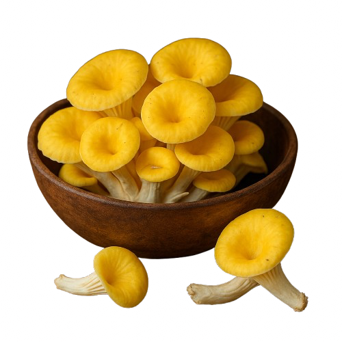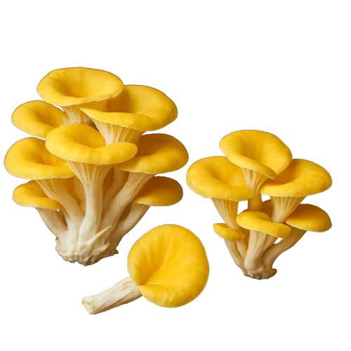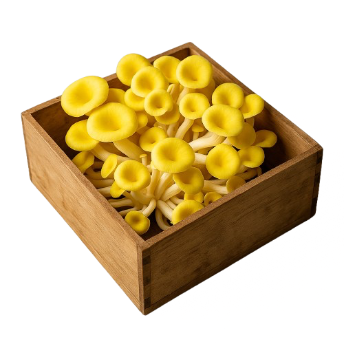 Der Gelbe bzw. Goldene Austernpilz ist eine elegante Sorte mit leuchtend goldenen Hüten und einem mild-nussigen Geschmack. Seine Hüte sind weich und zart, während die Stiele leicht fest bleiben und beim Kochen eine angenehme Textur erzeugen. Ursprünglich aus subtropischen und tropischen Regionen stammend, wird er heute aufgrund seiner Anpassungsfähigkeit und seines attraktiven Aussehens weltweit kultiviert – ein Favorit in der gehobenen Gastronomie.